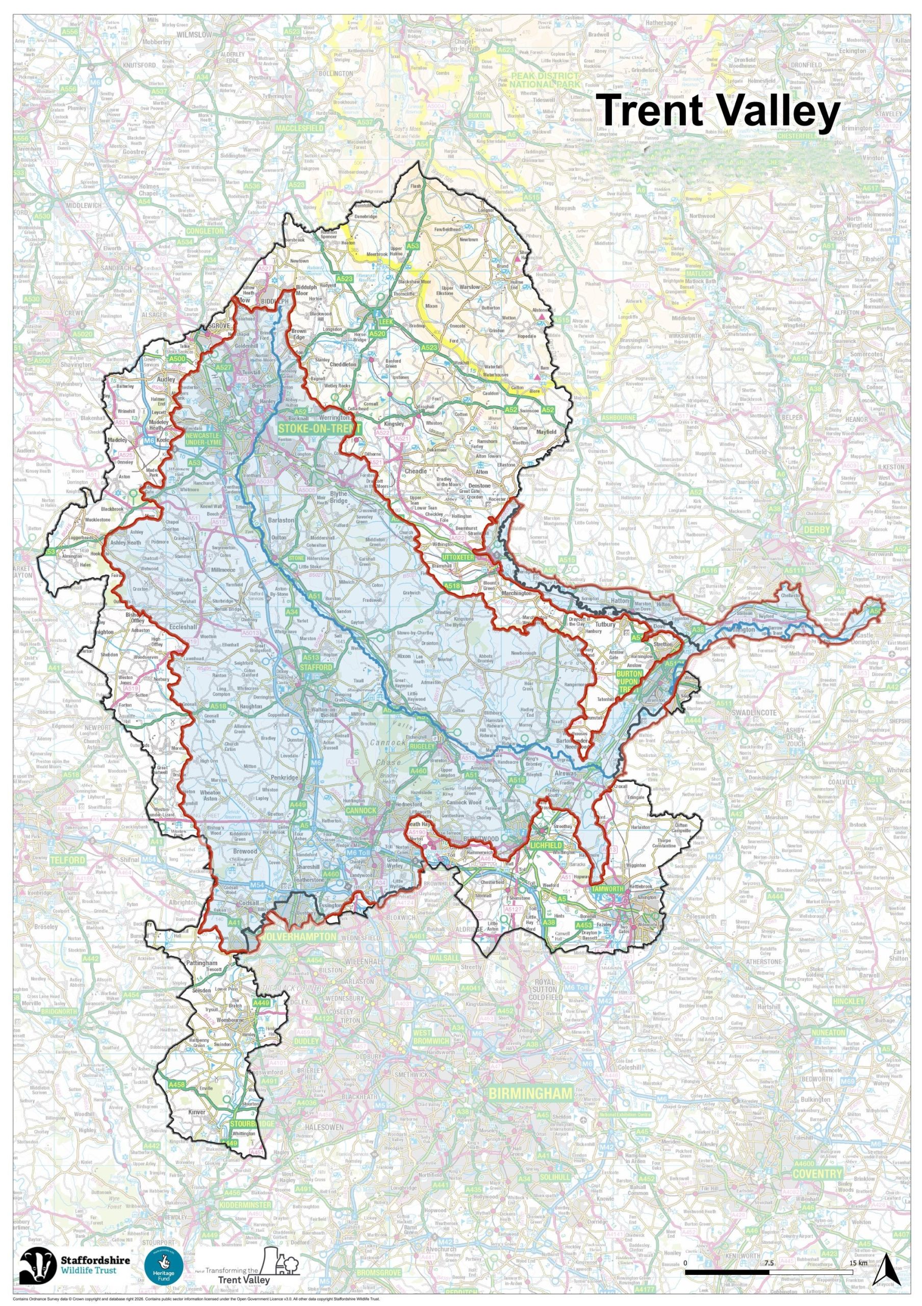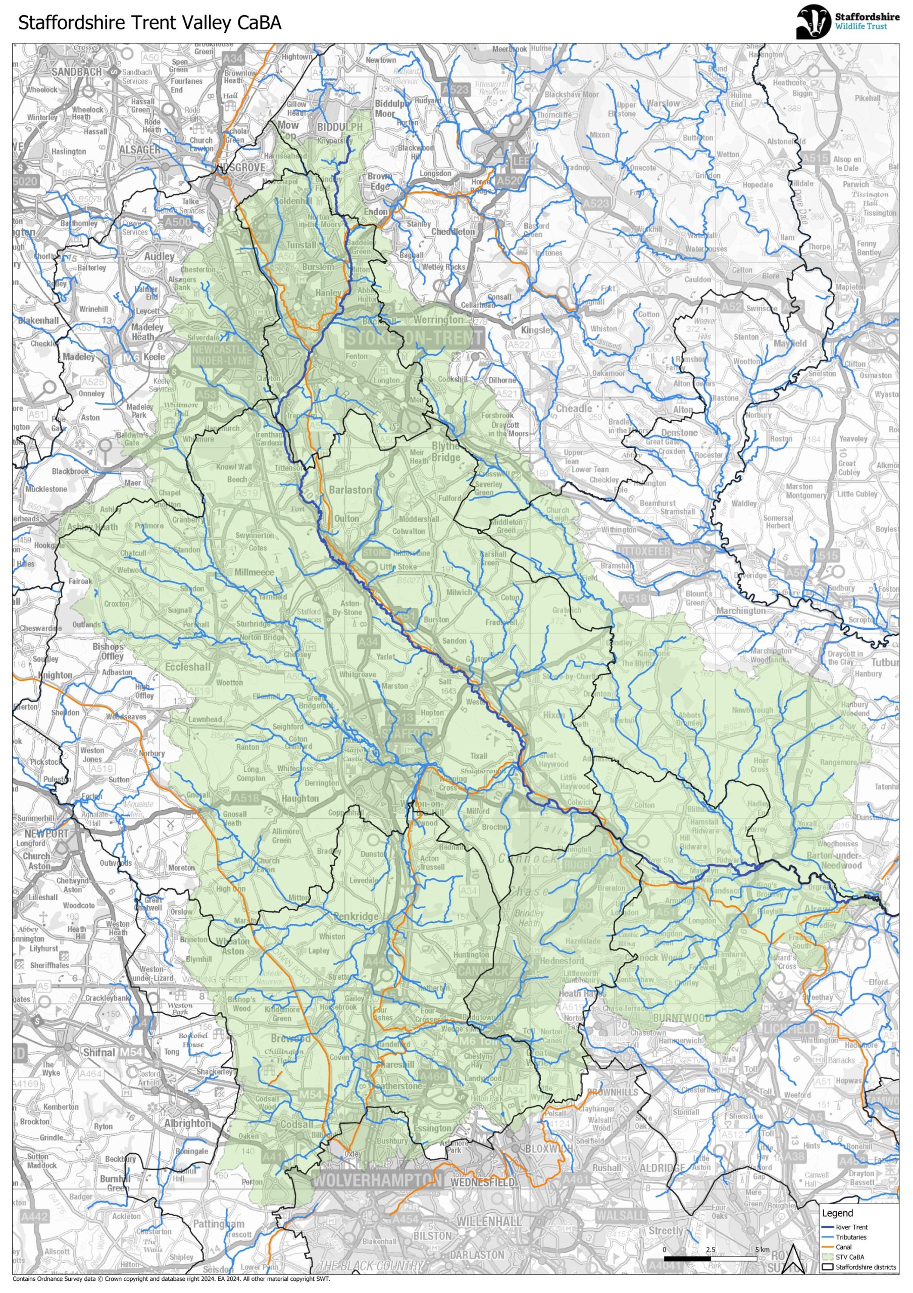 Staffordshire Trent Valley CaBA boundary. Contains Ordnance Survey data (c) Crown copyright and database right 2024. EA 2024. All other material copyright Staffordshire Wildlife Trust