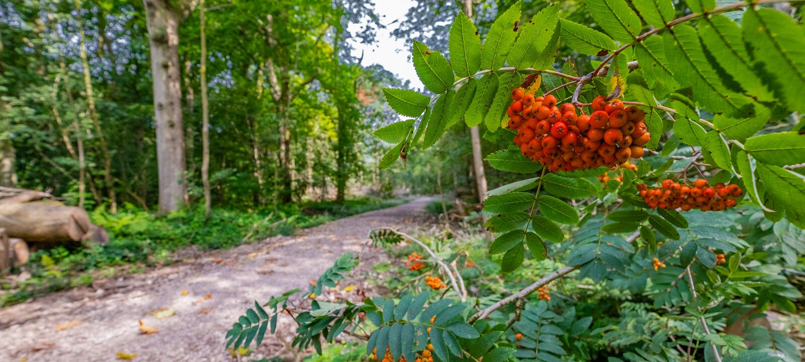 30th July 2024: Hem Heath Nature Reserve: Rowen berries by the path: © 2024 Paul L.G. Morris