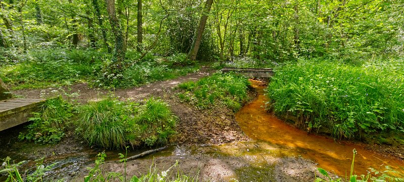 16th May 2025: Parrots Drumble Nature Reserve: © 2025 Paul L.G. Morris: Brown stream through the wood