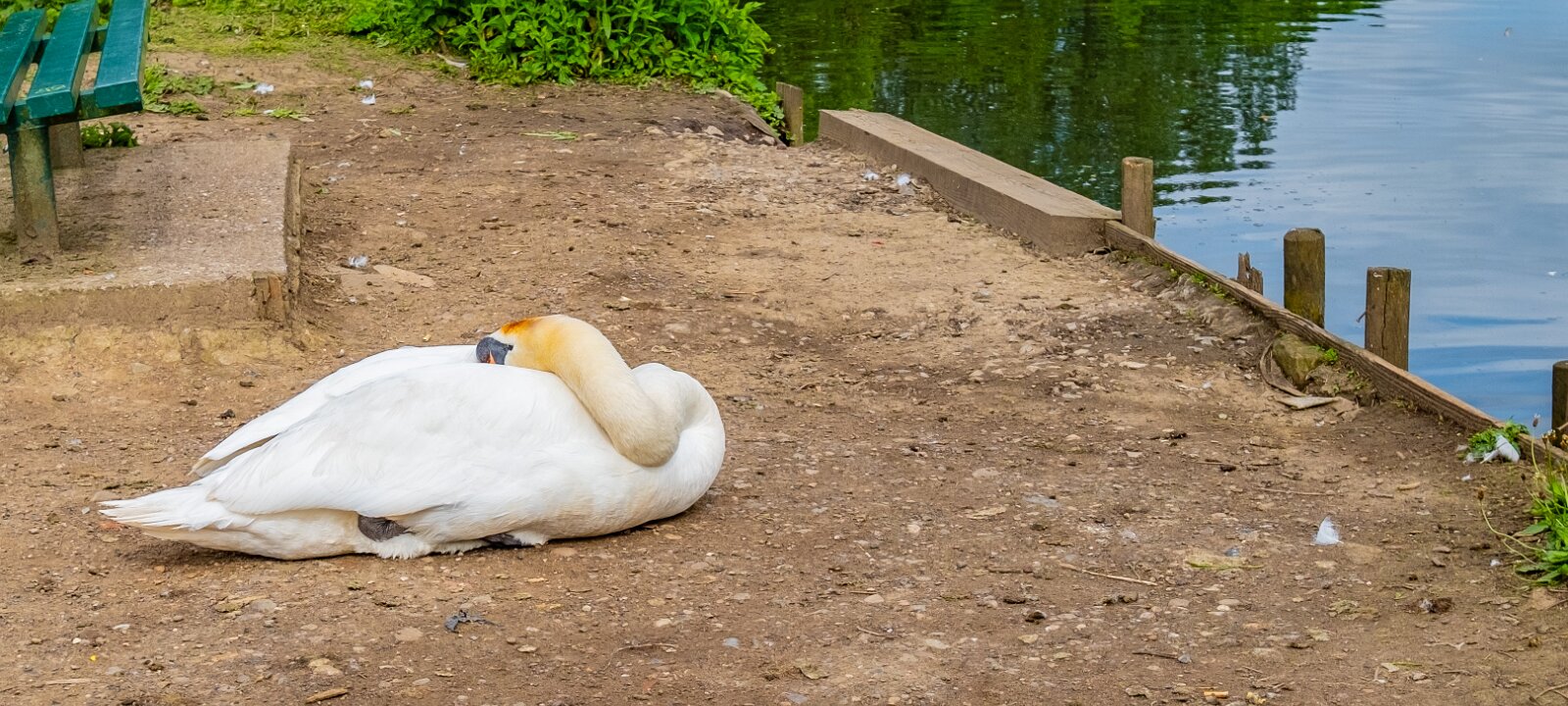 21st May 2024: Whitfield Valley Nature Reserve: Swan bt a park bench: © 2024 Paul L.G. MorrisRef::Whitfield-Valley-NR-PLGM-F24 4692r1 29th July 2024: Westport Lake Nature Reserve: © 2024 Paul L.G. Morris: The smaller lake to the south: SwansRef::Westport-lake-PLGM-F24 8105-SR-r1 CootCanada Geese