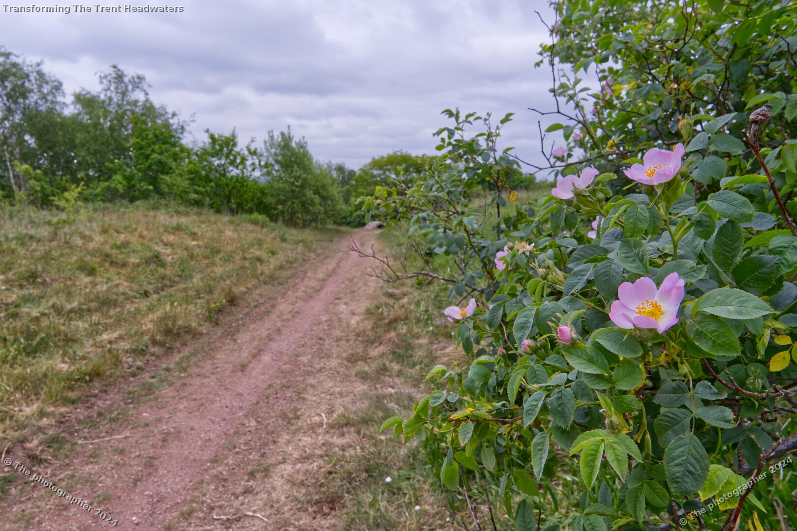 22nd May 2025: Chatterley Whitfield Colliery: © 2025 Paul L.G. Morris: View from the spoil heap with roses